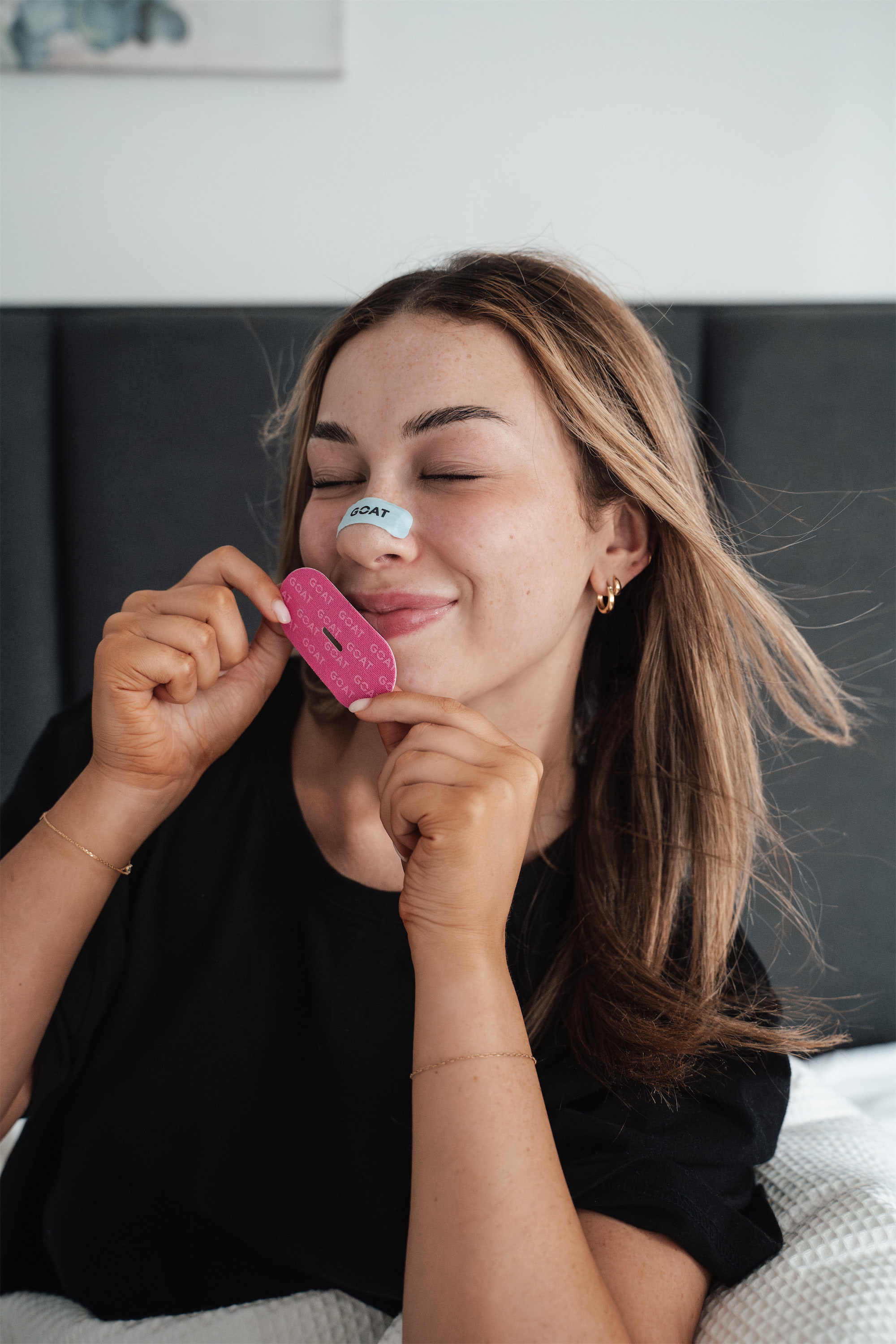 GOAT nose strips help open your airways for more oxygen intake, while the mouth tape ensures restorative nose breathing all night long. This results in deeper sleep, faster recovery and more energy during the day.
