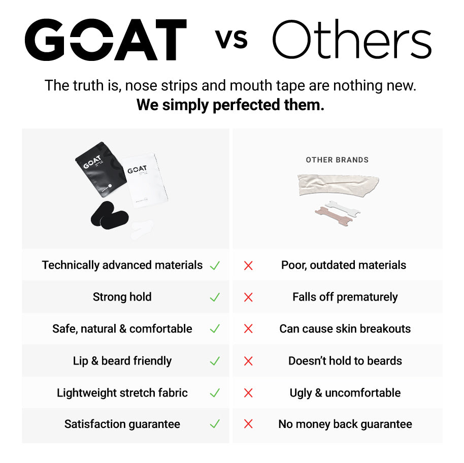 Slap on some GOAT mouth tape each night and start sleeping like a champion from the very first night.